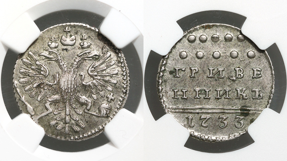 Кадашевский монетный двор. Биткин R, №187 стр.498, Уздеников №0709, Петров - 2 рубля. В слабе NGC AU55.