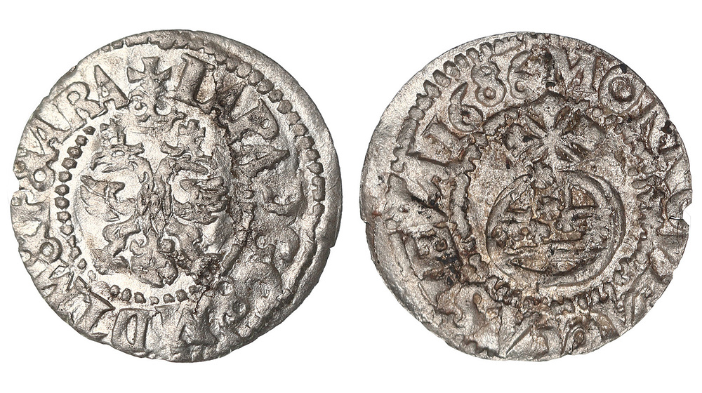Редкая. Серебро. Вес 0,87 гр. Отчеканен по образу польского полторака в городе Севск. Предназначался для торговли с Речью Посполитой (Польшей).