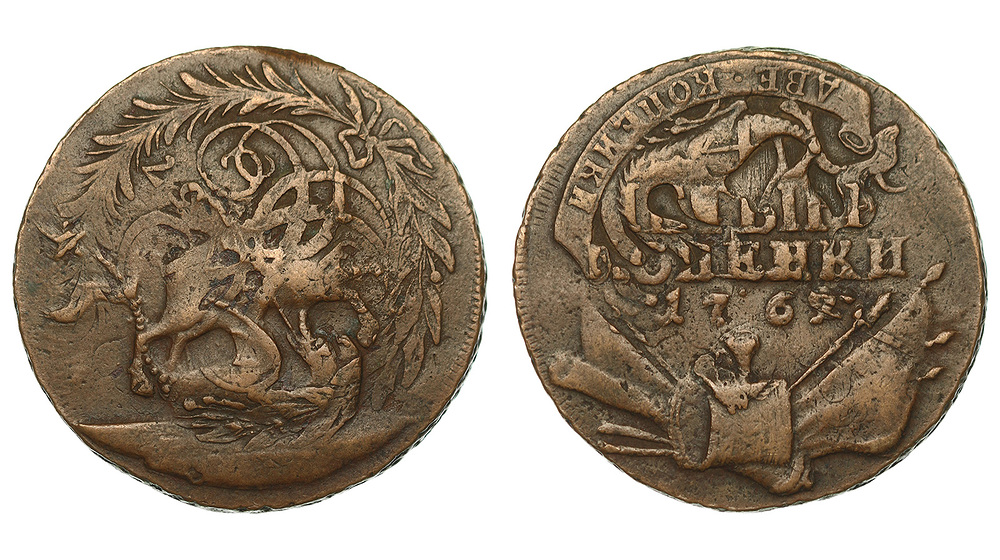 Желтая патина. Красивые следы перечекана из 2х копеек 1757 года. Гурт-сетка. Биткин №27 стр.624, Уздеников редкость - "точка", №2624, Ильин - 2 рубля, Петров - 0,75 рублей.