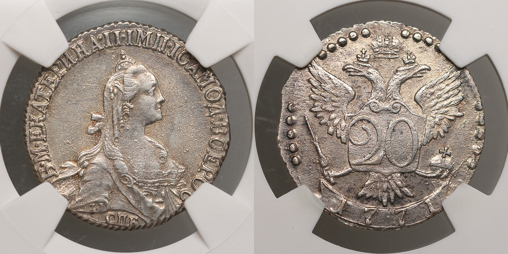 Россия. 20 копеек 1771 года. СПБ ТI. UNC det.