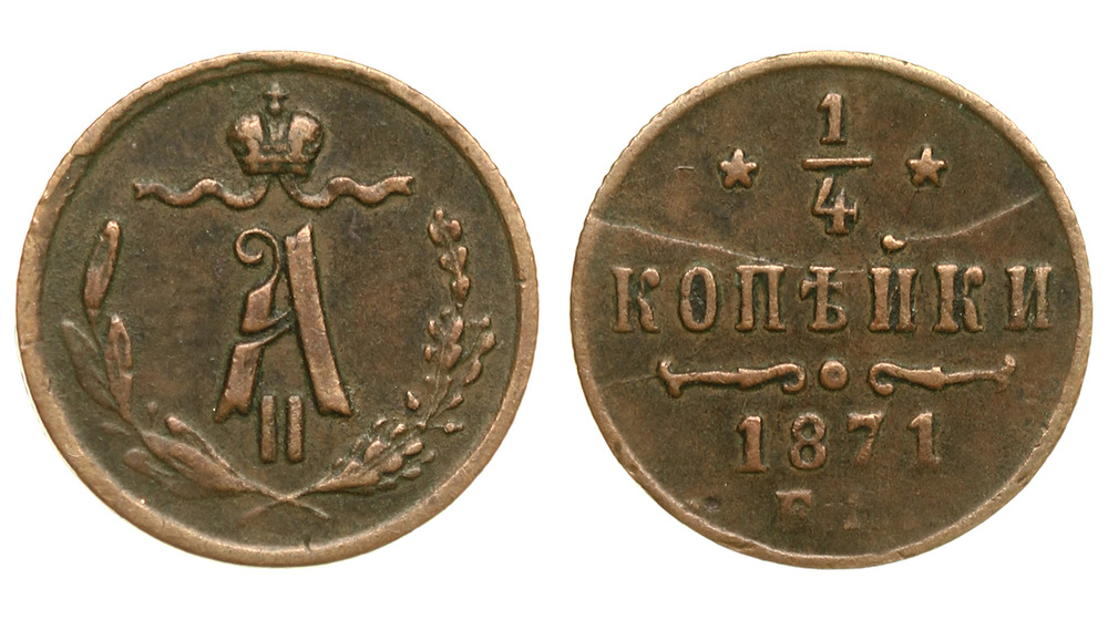 Россия. 1/4 копейки 1871 года. ЕМ.