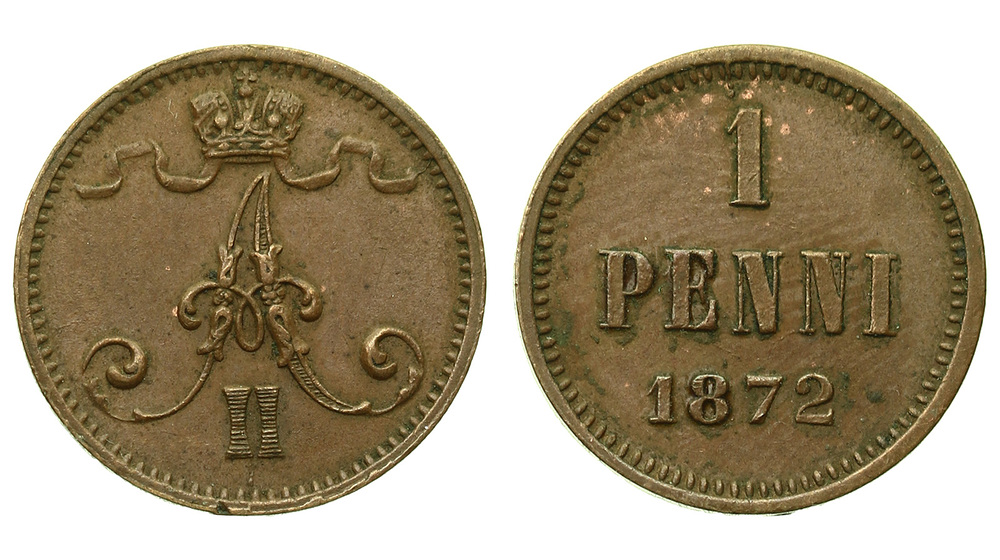 Россия. Для Финляндии. 1 пенни 1872 года.