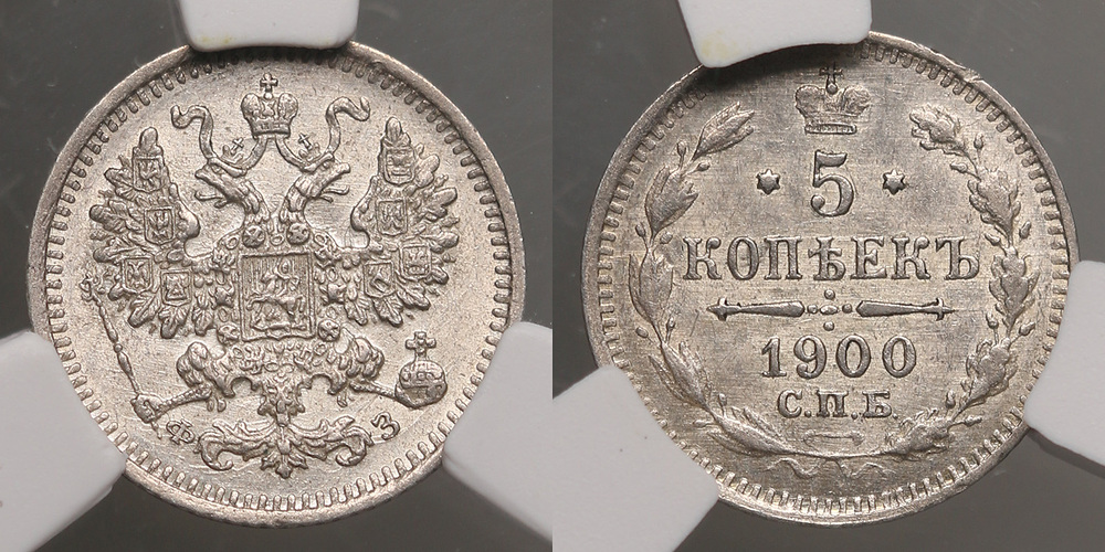 Россия. 5 копеек 1900 года. СПБ ФЗ. MS63.