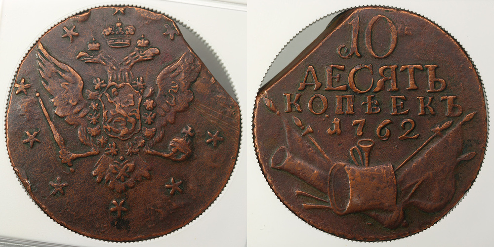 Россия. 10 копеек 1762 года. XF DETAILS.