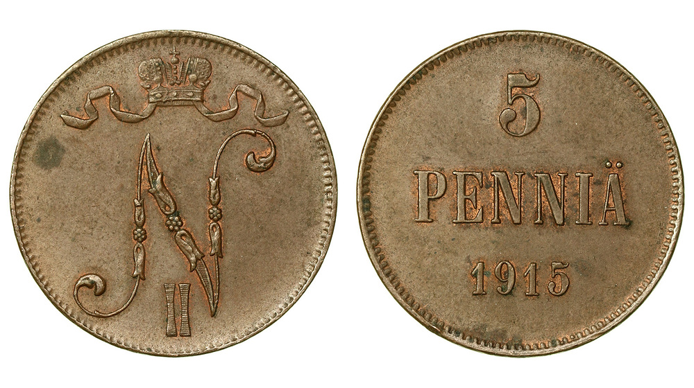 Россия. Для Финляндии. 5 пенни 1915 года.