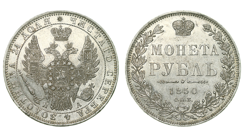 Россия. 1 рубль 1850 года. СПБ ПА.