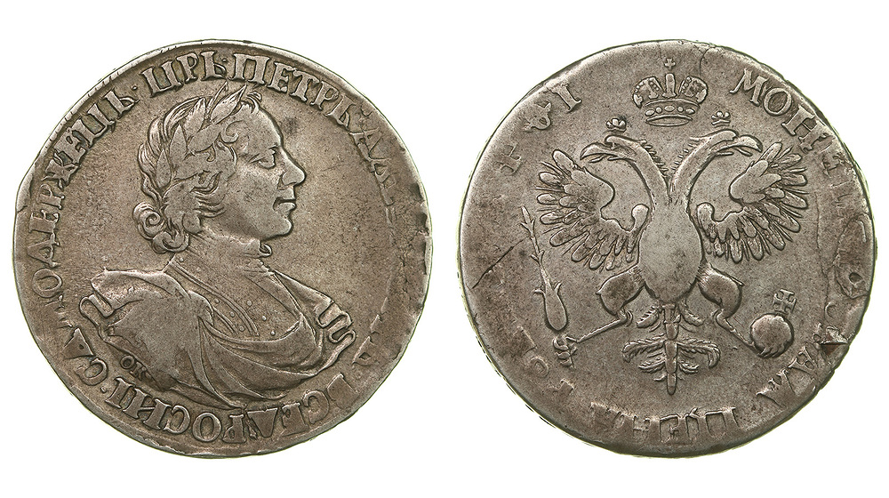 Россия. 1 рубль 1719 года. ОК-L.