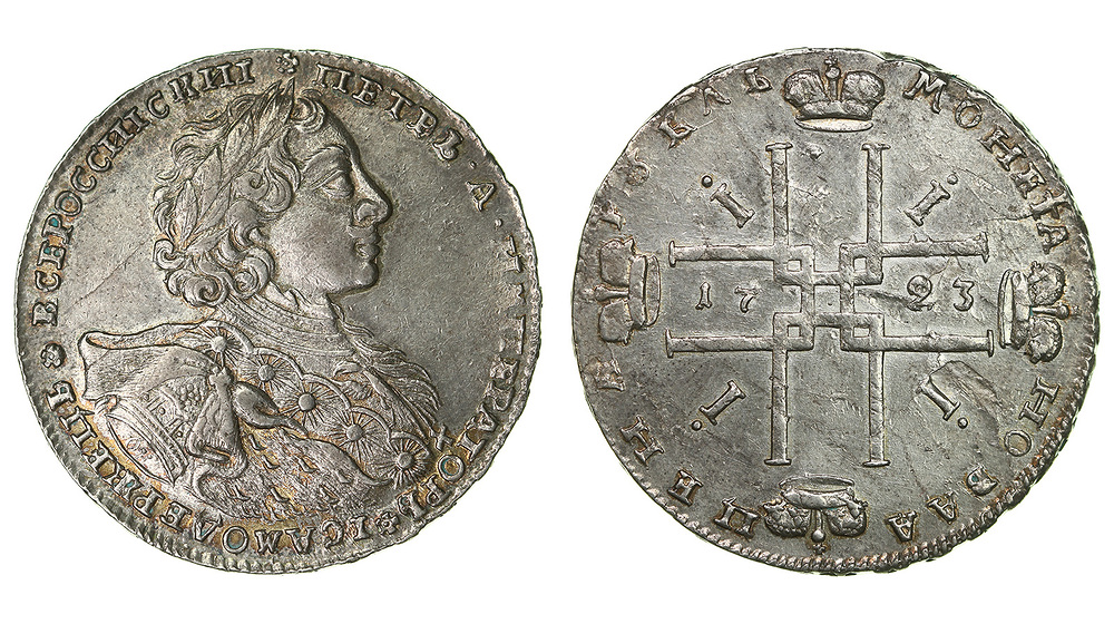 Штемпельный блеск. Красный монетный двор. Золотисто-серая патина. Биткин №876, стр.108, Уздеников №0606.