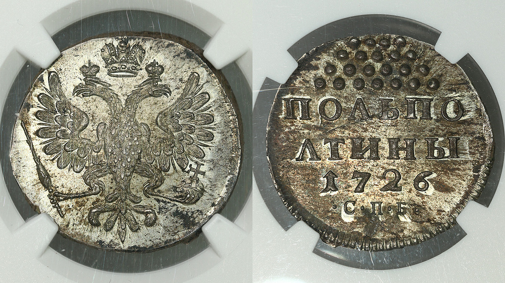 Россия. Полполтины 1726 года. Новодел. MS64.