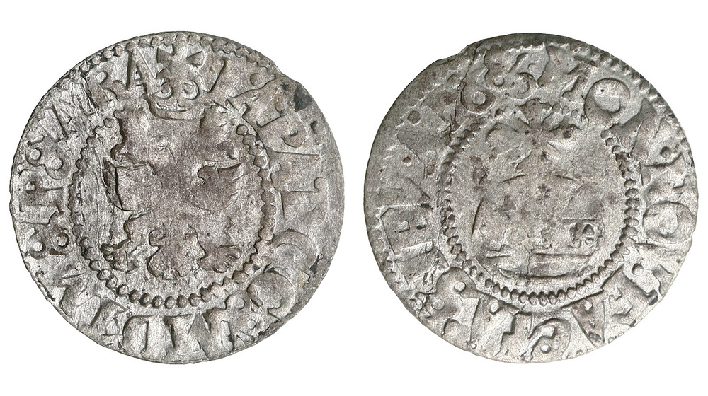 Редкая. Серебро. Вес 0,87 гр. Отчеканен по образу польского полторака в городе Севск. Предназначался для торговли с Речью Посполитой (Польшей).