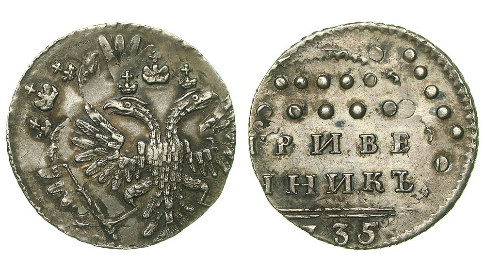Кадашевский монетный двор. Брак чеканки - двойной удар. Интересный коллекционный экзепляр. Биткин R, №192, стр.499, Уздеников №0725. Петров - 3 рубля.