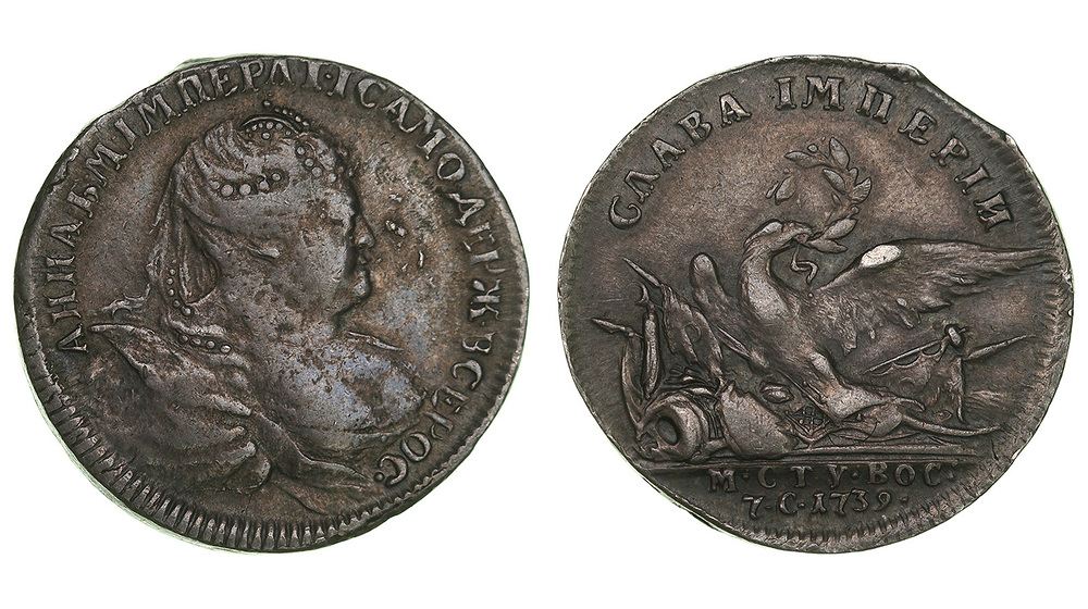 Серебро. "В память заключения мира с Турцией". Санкт-Петербургский монетный двор. Диаметр 22,0 мм. Руденко 1739.2. Дьяков 81.5(R1). Биткин №Ж418, стр.512.