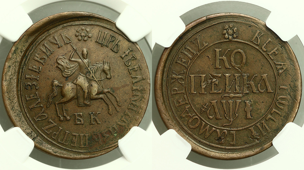 Россия. 1 копейка 1710 года. Новодел. AU55 BN.