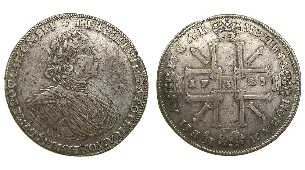 Очень редкая. Светло-серая кабинетная патина. Санкт-Петербургский монетный двор. "Солнечный". Биткин №1336(R2), стр.156, Уздеников №0626. Петров - 25 рублей.