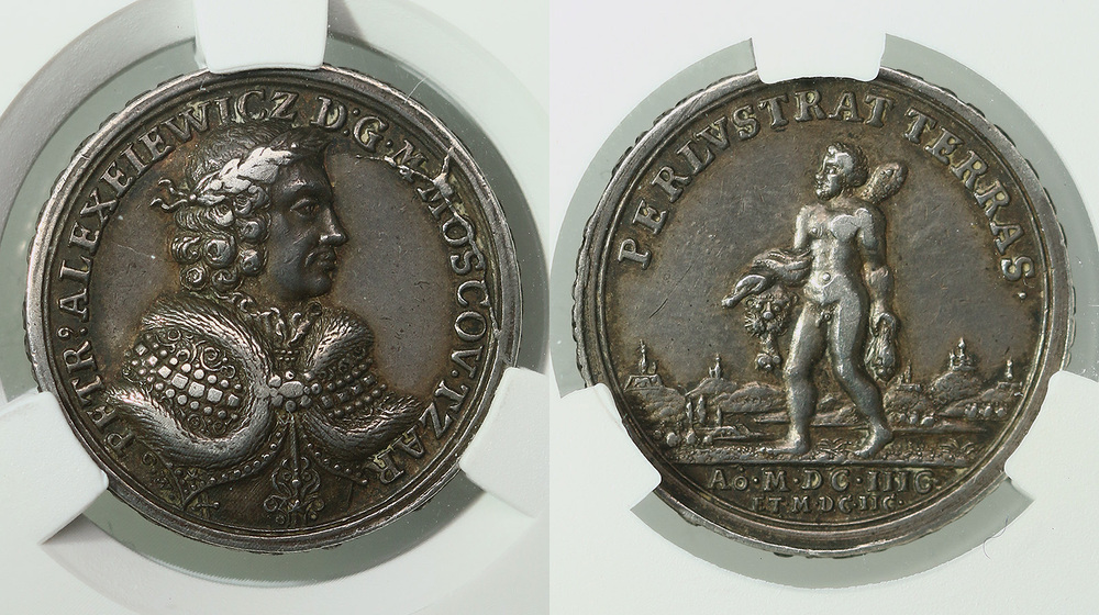 Россия. Медаль "В память первого путешествия Петра I в Европу". AU55.