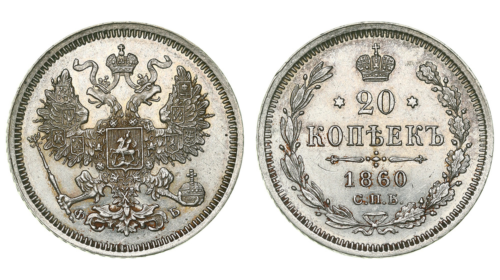 Россия. 20 копеек 1860 года. СПБ ФБ.