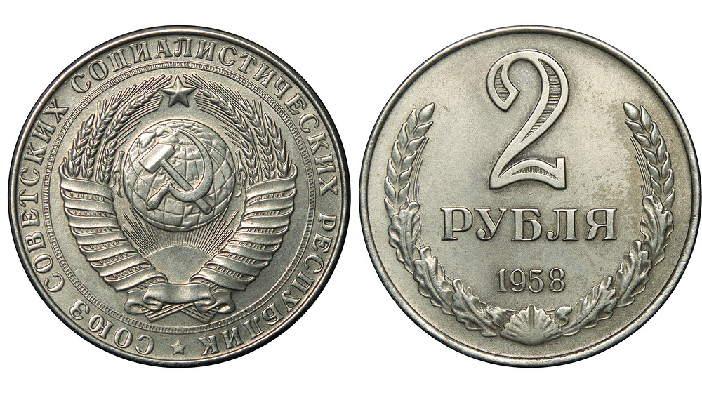 Ленинградский монетный двор. На аверсе размер герба больше. Гурт гладкий. Медно-никелевый сплав, 9,87 г. Ушаков, Федорин# 412 (Р-1), Федорин VI# 2. Сохранность близкая к превосходной превосходная, приглушенный штемпельный блеск. Довольно редкая и важная монета.
