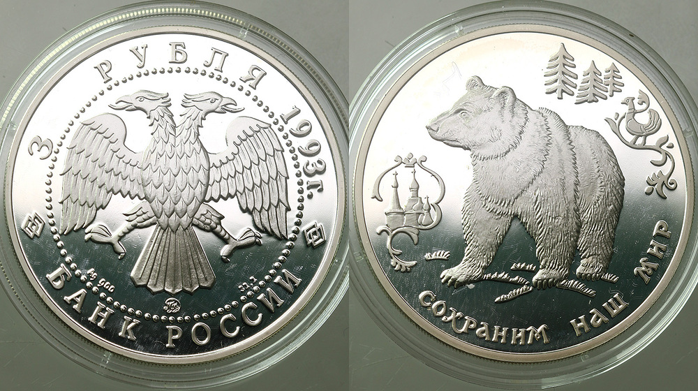 РФ. 3 рубля 1993 года. ММД. Proof.