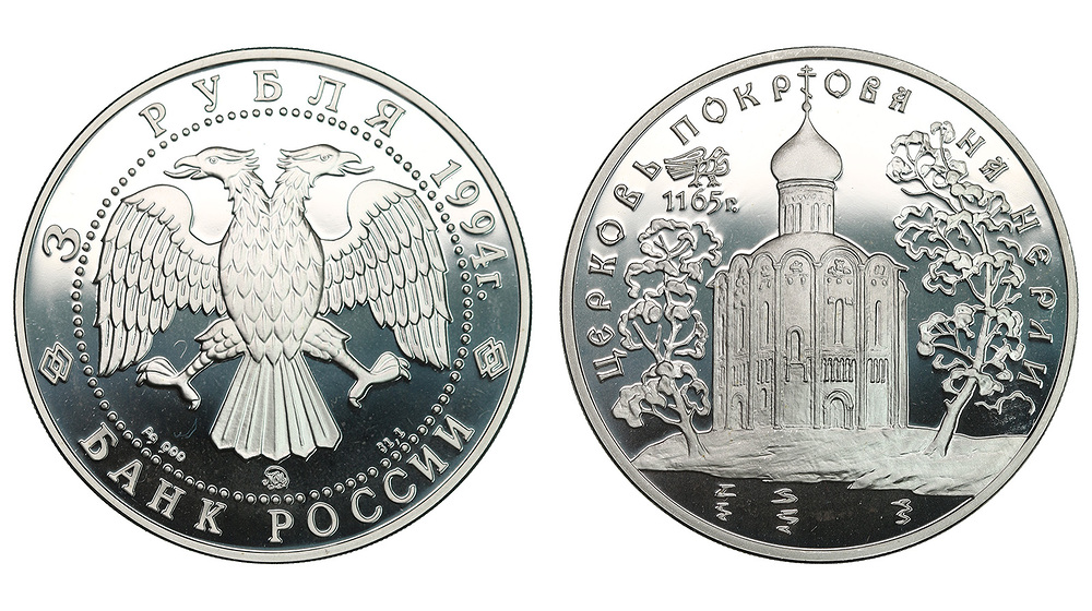 Серебро. 1,0 oz. 0,900. 34,88 г. "Церковь покрова на Нерли". В оригинальной капсуле.