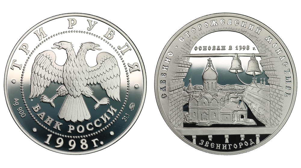 Серебро. 1,0 oz. 0,900. 34,88 г. "Саввино-Сторожевский монастырь. Звенигород". В оригинальной капсуле.