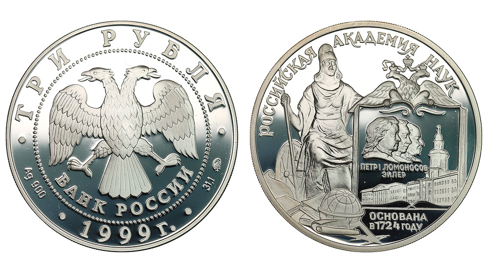 Серебро. 1,0 oz. 0,900. 34,88 г. "275-летие Российской академии наук". В оригинальной капсуле.