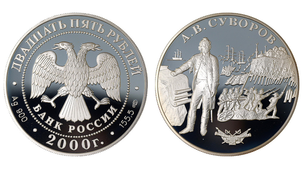 Серебро. 5,0 oz. 0,900. 173,29 г. "А. В. Суворов". Тираж 1000 шт. В оригинальной капсуле.