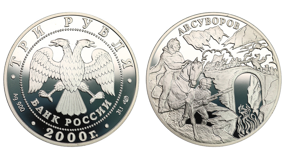 Серебро. 1,0 oz. 0,900. 34,88 г. "А.В. Суворов". В оригинальной капсуле.