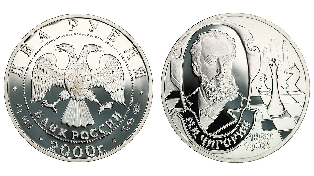 Серебро. 0,5056 oz. 0,925. 17,0 г. "150 лет со дня рождения Михаила Чигорина". Y#704. В оригинальной капсуле.