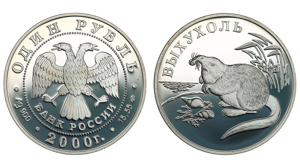 Редкая. Серебро. 0,5 oz. 0,900. 17,28 г. "Выхухоль". Тираж 3000 шт. В оригинальной капсуле.