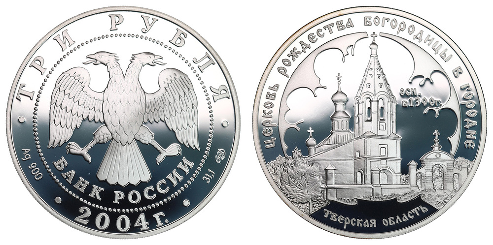 Серебро. 1,0 oz. 0,900. 34,88 г. "Церковь Рождества Богородицы (1390 г.), Городня". В оригинальной капсуле.