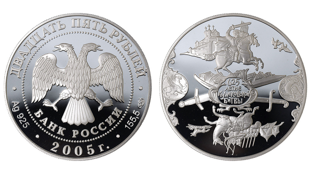 Серебро. 5,0 oz. 0,925. 168,1 г. "625-летие Куликовской битвы". В оригинальной капсуле.