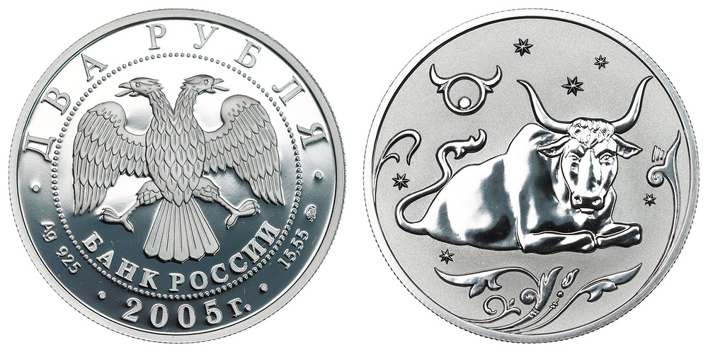Серебро. 0,5056 oz. 0,925. 17,0 г. "Знаки зодиака - Телец". Y#934. В оригинальной капсуле.