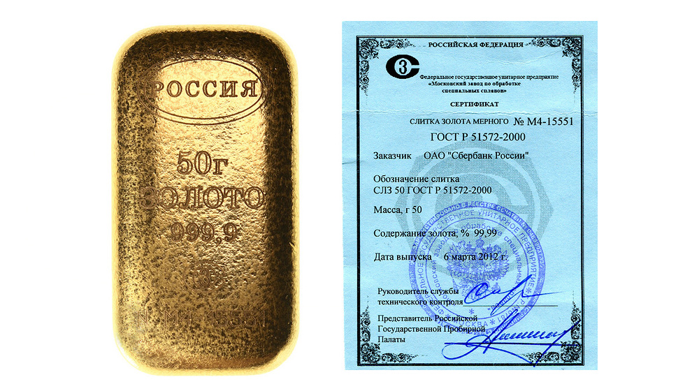 Золото. 1,6076 oz. 0,9999. 50,0 г. №М4-15551. С сертификатом.