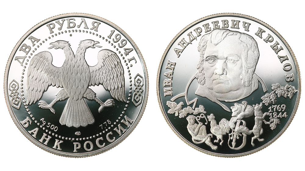Серебро. 0,25 oz 0,500. 15,55 г. "Крылов". В оригинальной капсуле.
