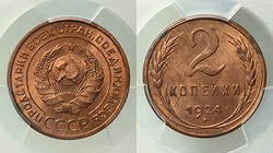СССР. 2 копейки 1924 года. MS64 RB.