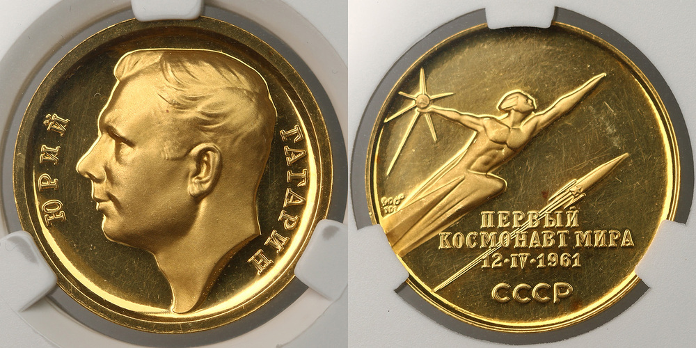 СССР. Медаль 1964 года. Юрий Гагарин. Первый космонавт мира. PF64 ULTRA CAMEO.