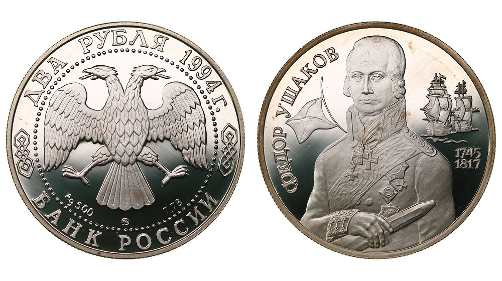 Серебро. 0,25 oz. 0,500. 15,55 г. "Ф.Ушаков". В оригинальной капсуле.