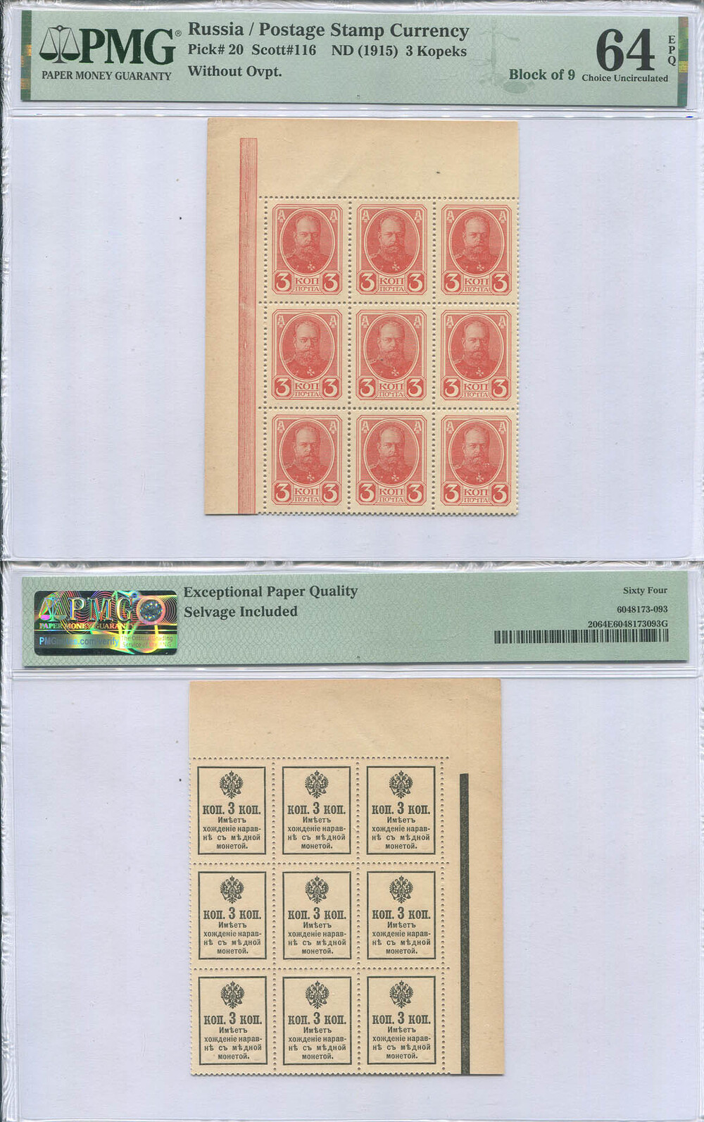 Российская Империя. Марки-деньги. 3 коп. АА № E2.3 угол листа, 9 шт.
