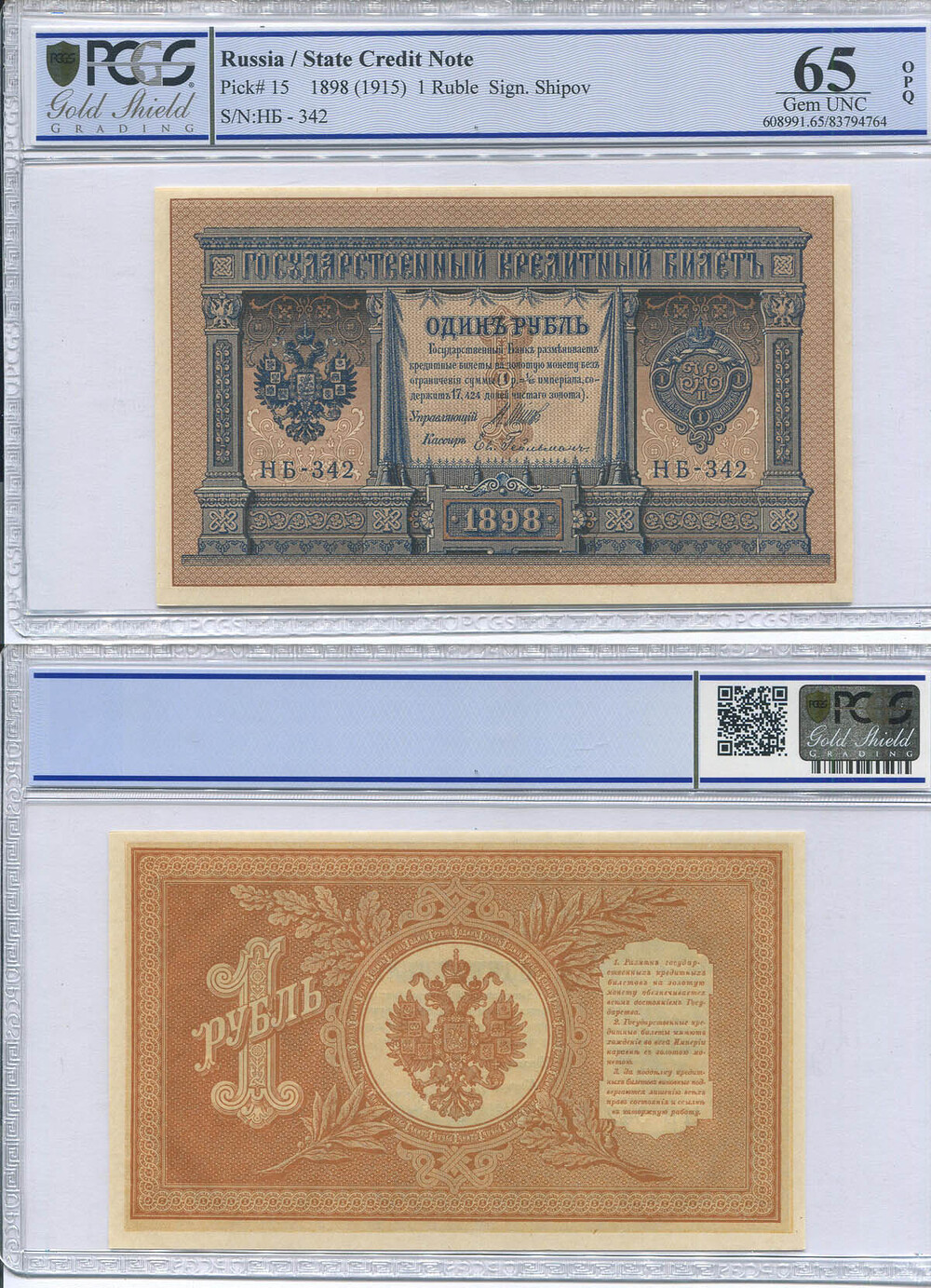 Государственный кредитный билет. 1 руб. 1898 г. АА № Е4.1 НБ-342 Шипов/Гейльман
