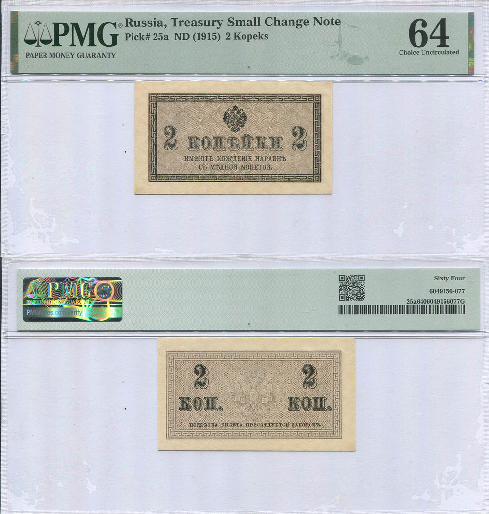 Российская Империя. Билет. 2 коп. б/г (1915 г.). АА № Е3.2