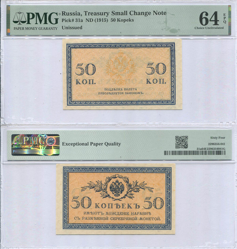 Российская Империя. Билет. 50 коп. б/г (1915 г.). АА № Е3.8