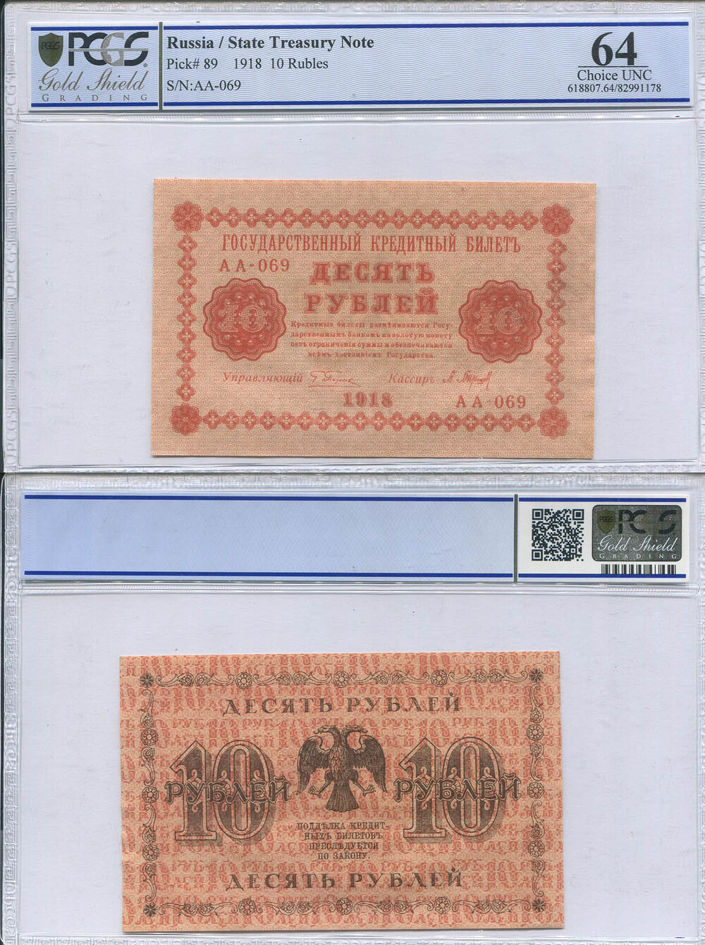 РСФСР. Государственный кредитный билет. 10 руб. 1918 г. АА №E7.4 # АА-069 Пятаков/Порохов
