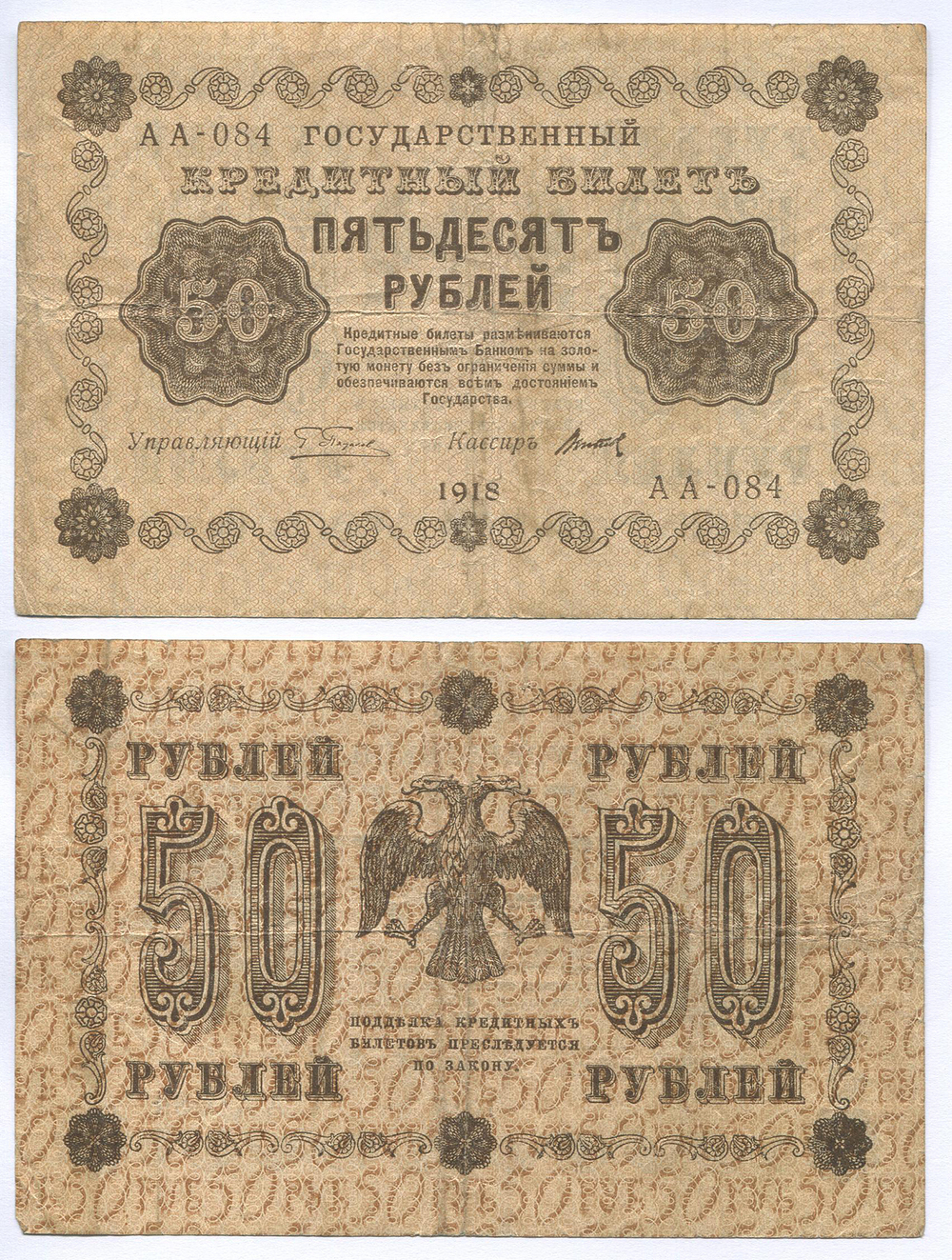 РСФСР. Государственный кредитный билет. 50 руб. 1918 г. АА №E7.6a # АА-084 Пятаков/Титов