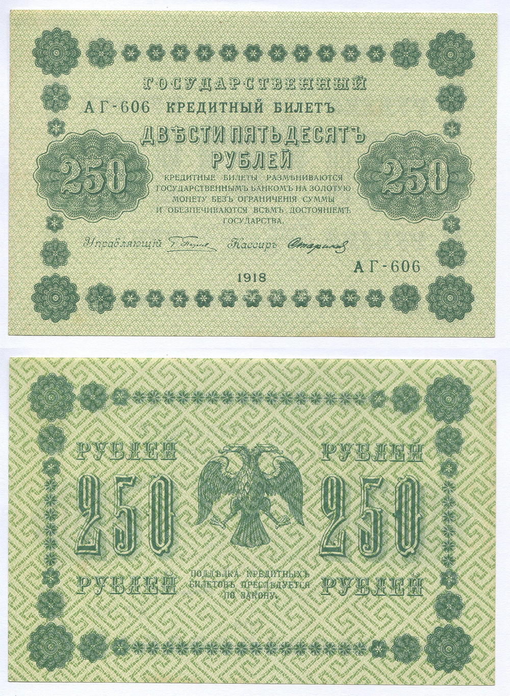 РСФСР. Государственный кредитный билет. 250 руб. 1918 г. АА №E7.8c # АГ-606 Пятаков/Стариков