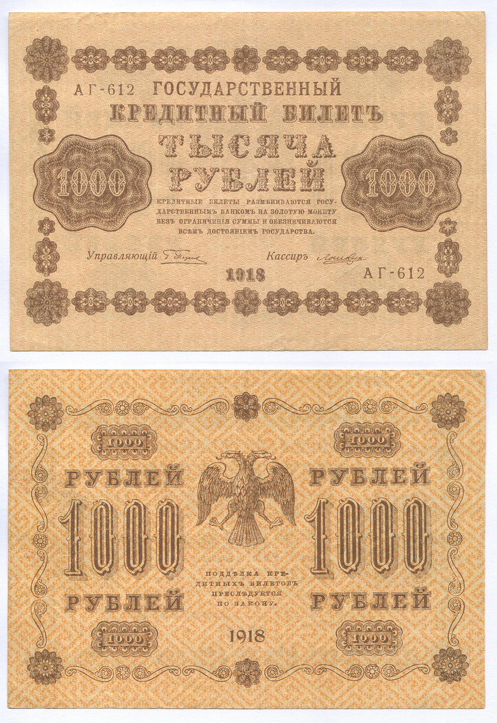 РСФСР. Государственный кредитный билет. 1000 руб. 1918 г. АА №E7.10c # АГ-612 Пятаков/Лошкин