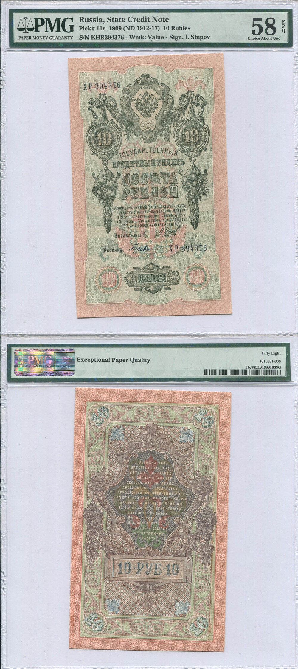Государственный кредитный билет. 10 руб. 1909 г. АА №E1.4 ХР 394376 Шипов/Гусев