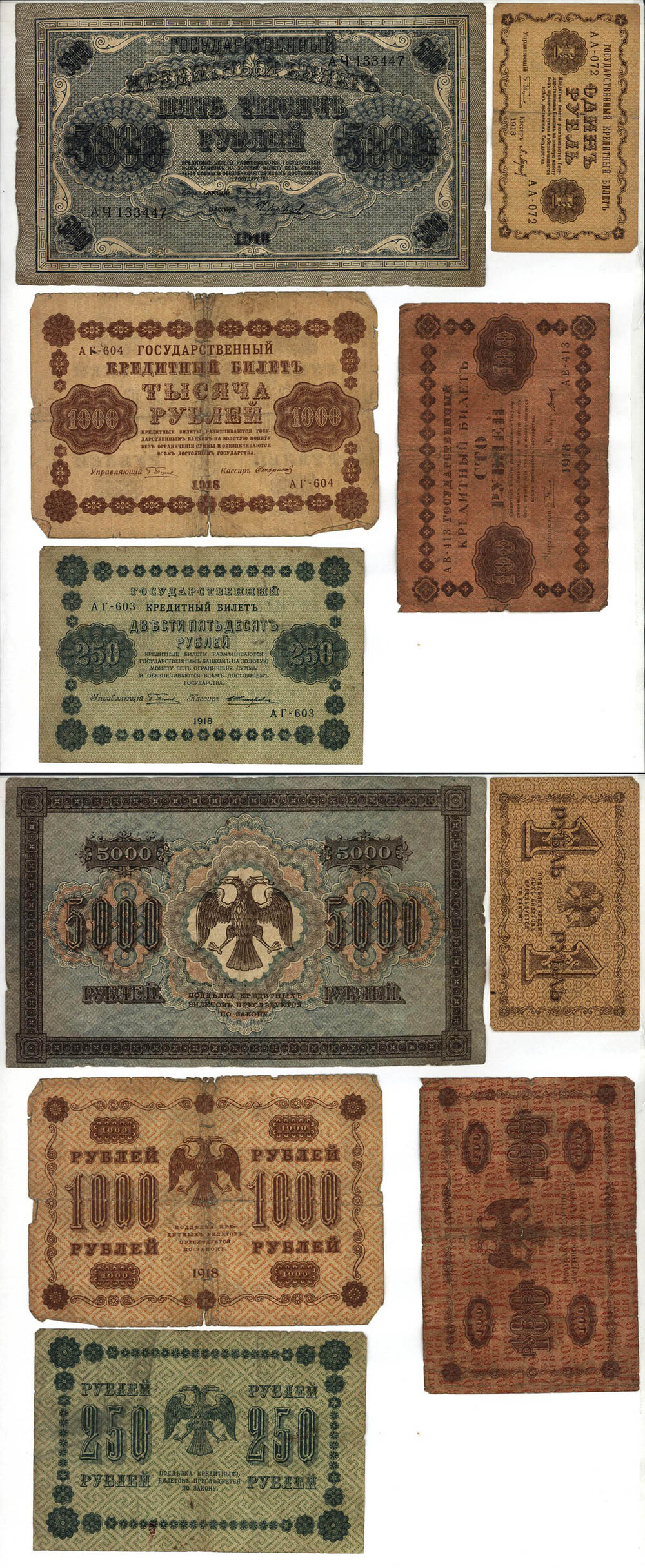 Групповой лот. РСФСР. Государственные кредитные билеты 1918 г. 5 шт.