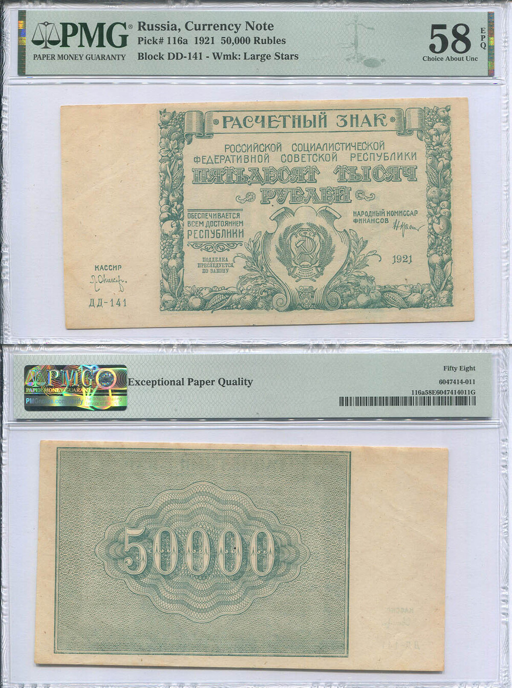 РСФСР. Расчётный знак. 50.000 руб. 1921 г. АА № E9.11b # ДД-141 Крестинский/Оников