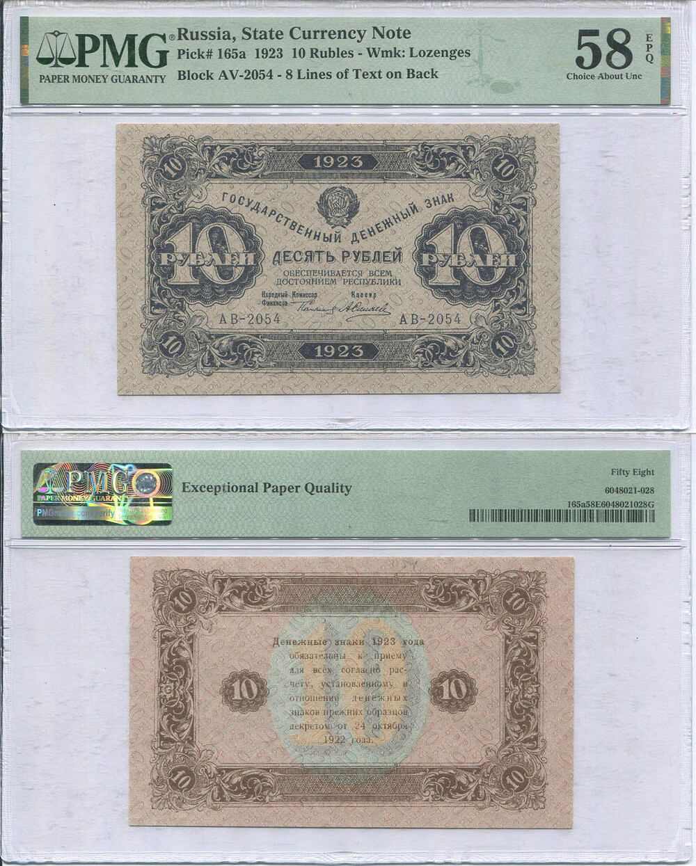 РСФСР. Государственный денежный знак. 10 руб. 1923 г. АА № E15.3a # АВ-2054 Сокольников/Силаев