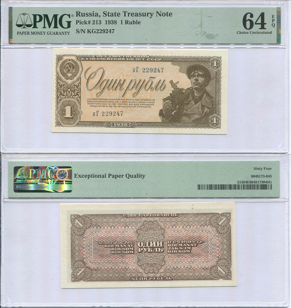 Государственный казначейский билет СССР. 1 руб. 1938 г. АА № U5.1b # кГ 229247